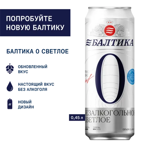 «Балтика №0» - это классический светлый лагер с насыщенным и освежающим солодово-хмелевым вкусом, подробнее«Балтика №0» - это классический светлый лагер с насыщенным и освежающим солодово-хмелевым вкусом, только без алкоголя. Для варки Балтики 0 используются особые дрожжи, которые позволяют повторить технологию варки обычного пива. «Балтика №0» содержит минералы и витамины В, А и Е, которые помогают восстановиться после физической и умственной активности. 100% солод. Содержит всего 30 ккал на 100 г.