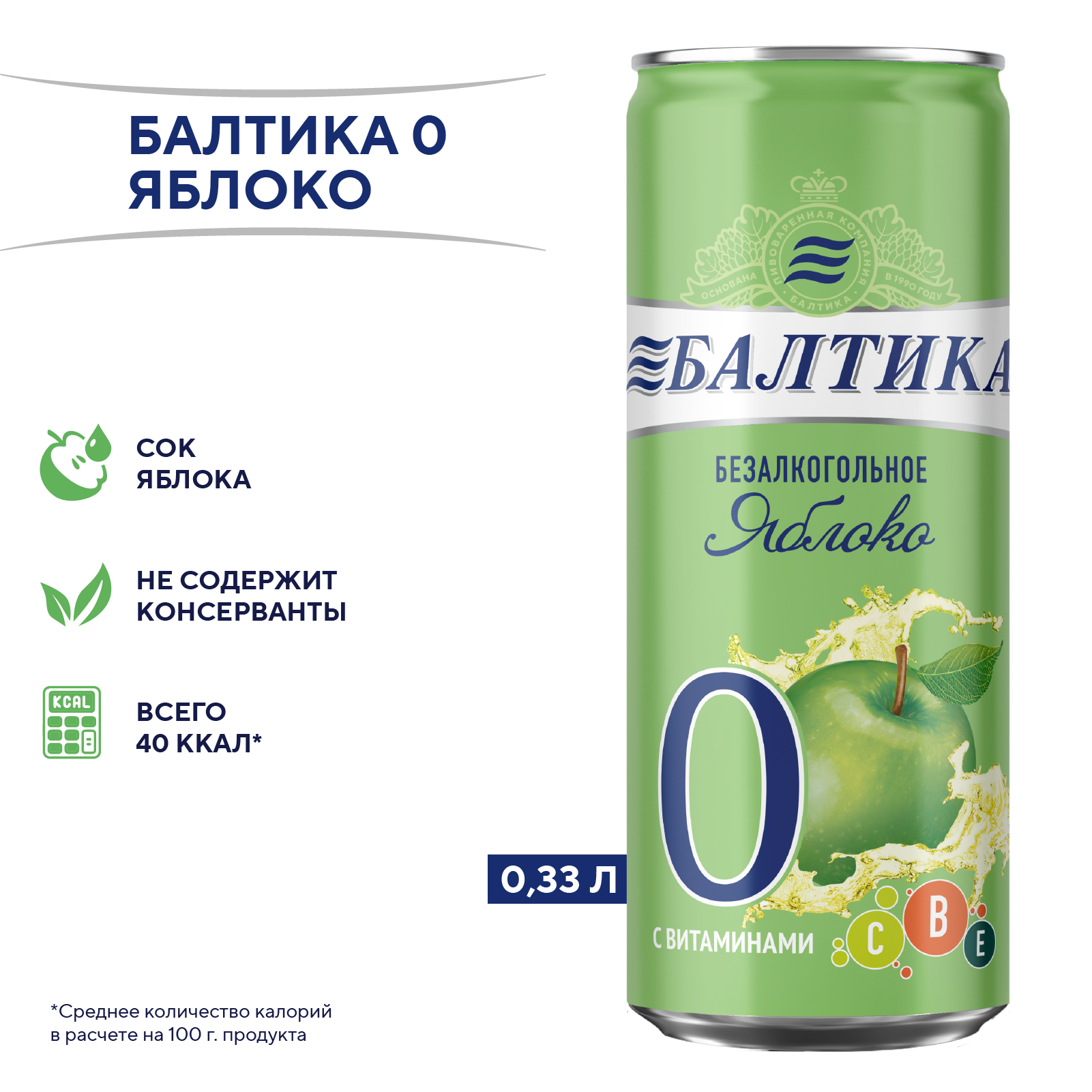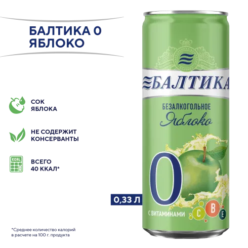 вода питьевая очищенная, солод пивоваренный ячменный светлый, ячмень пивоваренный, сахар, регулятор кислотности лимонная кислота, солодовые экстракты, ароматизатор пищевой натуральный, хмелепродукты, витаминный премикс (витамин Е, витамин В1, витамин В2, витамин В6, ниацин, фолиевая кислота, пантотеновая кислота, биотин, витамин В12, витамин С), сок яблочный концентрированный.