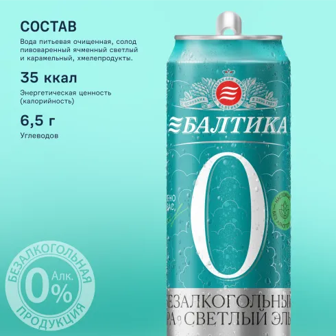 Балтика №0 Безалкогольный IPA Светлый Эль Банка 0,45
