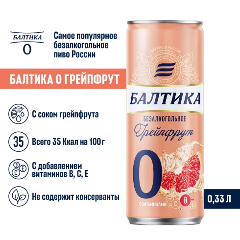 вода питьевая очищенная, солод пивоваренный ячменный светлый, ячмень пивоваренный, сахар, регулятор кислотности лимонная кислота, ароматизатор пищевой "грейпфрут", витаминный премикс (витамин Е, витамин B1, витамин B2, витамин B6, ниацин, фолиевая кислота, пантотеновая кислота, биотин, витамин B12, витамин C), сок грейпфрутовый концентрированный, хмелепродукты