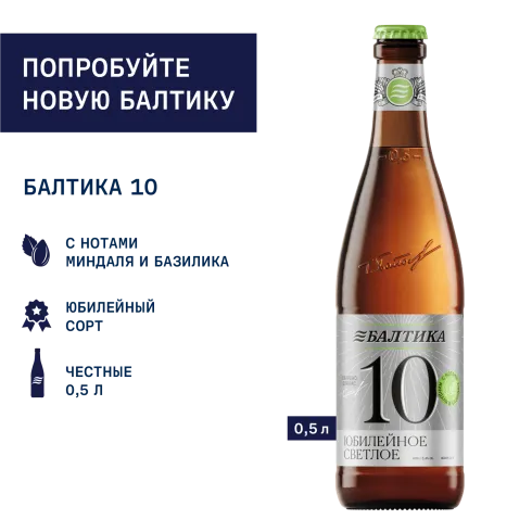 Балтика №10 Юбилейное - достаточно насыщенный и при этом освежающий светлый лагер, во вкусе которого подробнееБалтика №10 Юбилейное - достаточно насыщенный и при этом освежающий светлый лагер, во вкусе которого солодовые и хмелевые ноты изящно переплетаются со сладковато-пряными тонами миндаля и базилика. Сочетание умеренной сладости марципана и свежести базилика в аромате пробуждает аппетит и обещает интересное гастрономическое приключение."