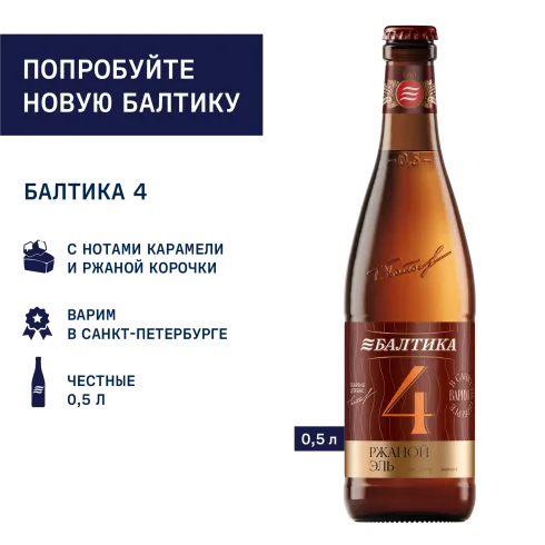 Балтика №4 – благородный эль с нотами карамели и ржаной корочки в аромате. Деликатную сладость во подробнееБалтика №4 – благородный эль с нотами карамели и ржаной корочки в аромате. Деликатную сладость во вкусе уравновешивает мягкая хмелевая горчинка.