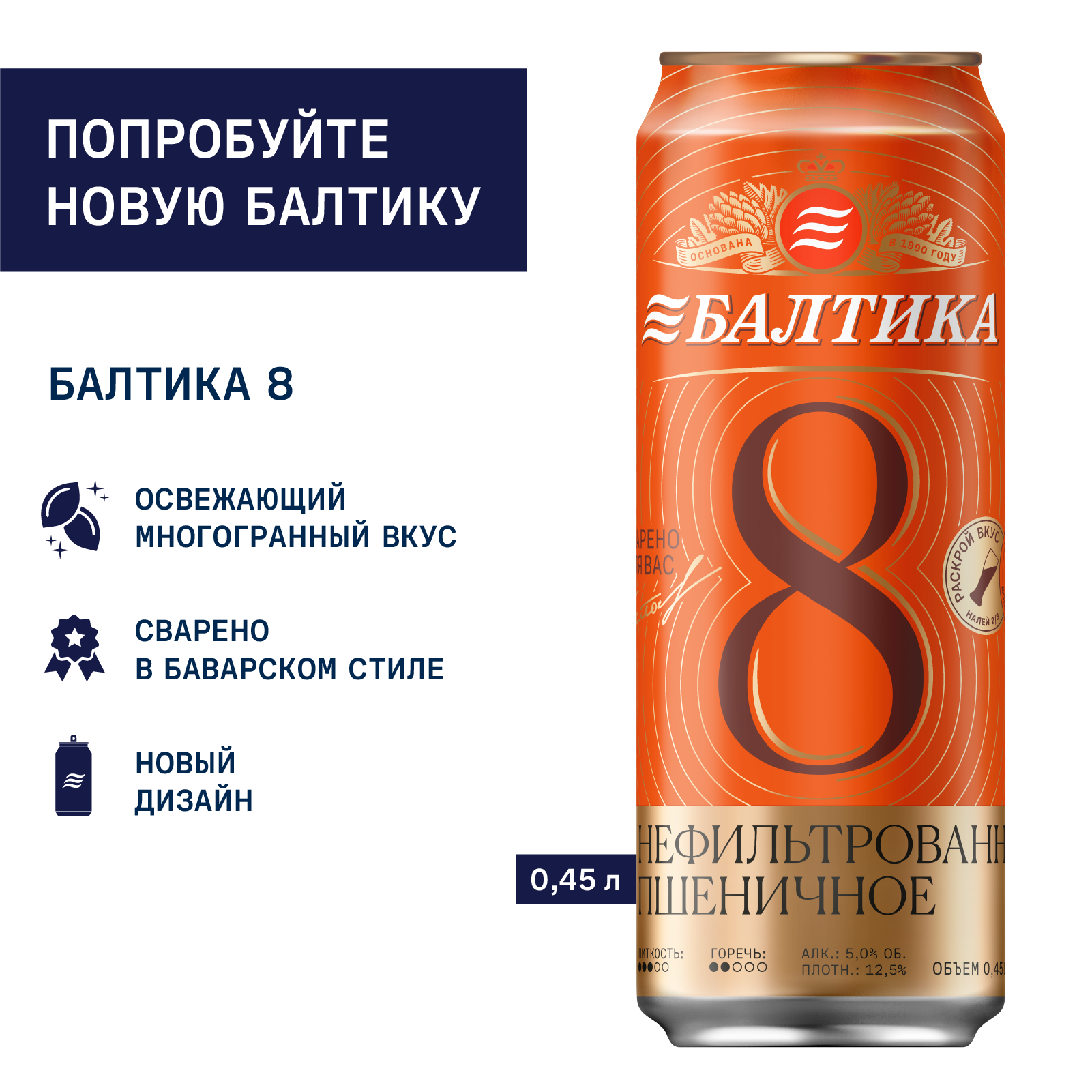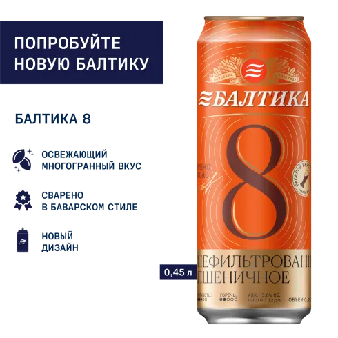 Балтика 8 - это пшеничное нефильтрованное пиво с насыщенным многогранным вкусом, едва уловимой