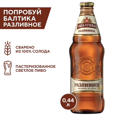 "Балтика Разливное Бутылка 0,44 – насыщенность и традиции в каждой бутылке! Балтика Разливное — это