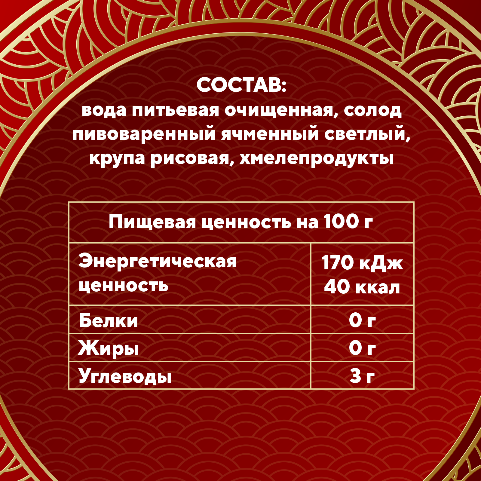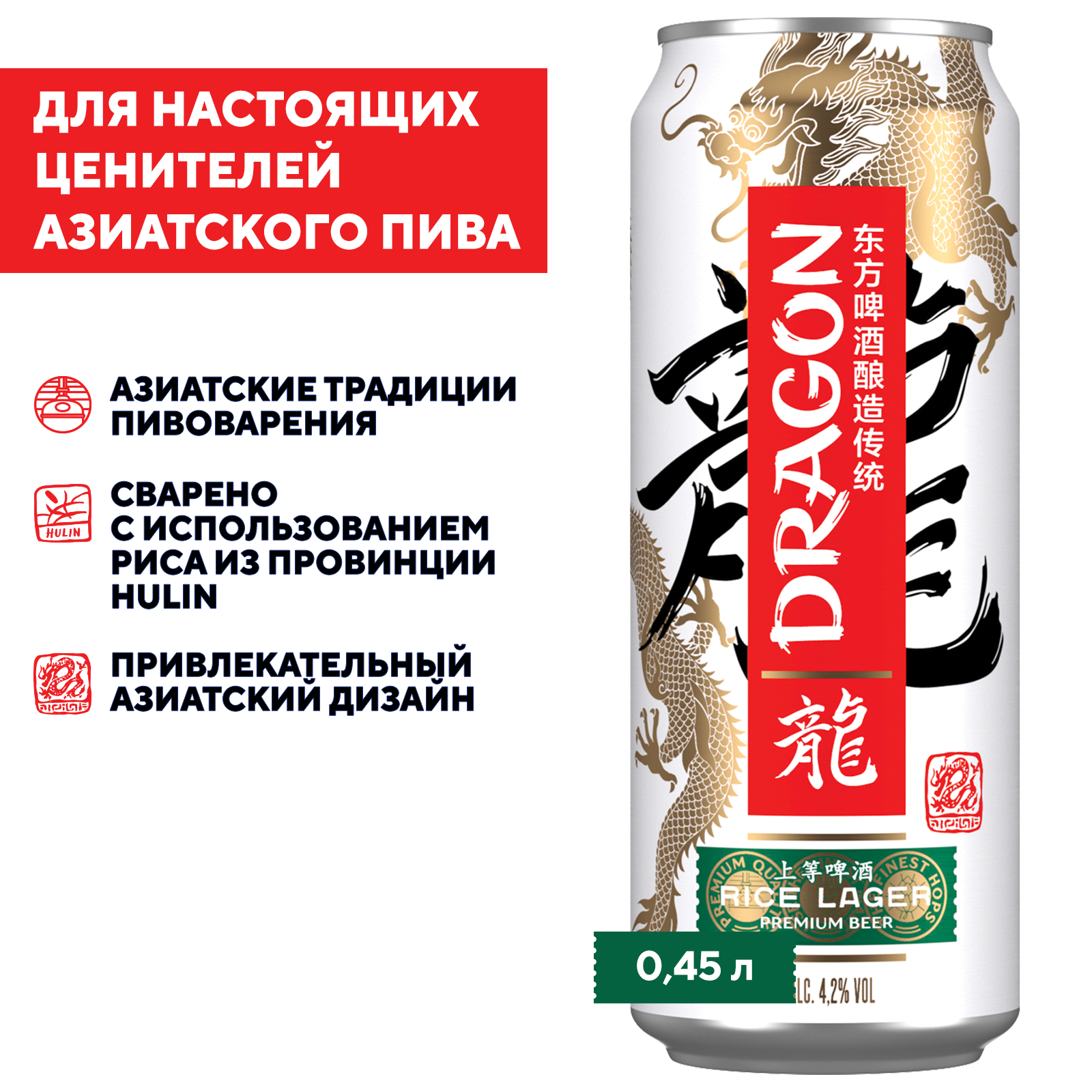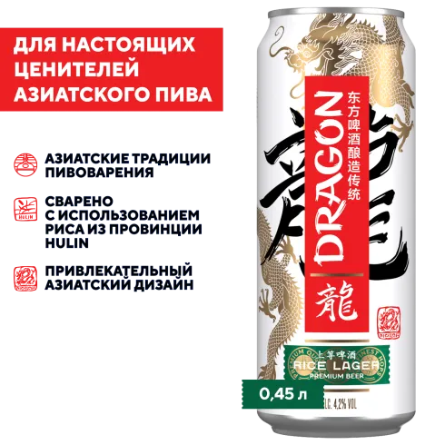 Вкус восточных традиций в традиционном рисовом лагере. Рис из провинции Hulin в составе пива Dragon подробнееВкус восточных традиций в традиционном рисовом лагере. Рис из провинции Hulin в составе пива Dragon делает его вкус мягким и освежающим. Гармоничное сочетание отборных сортов солода и хмеля оставляют яркий аромат и легкое приятное послевкусие.
