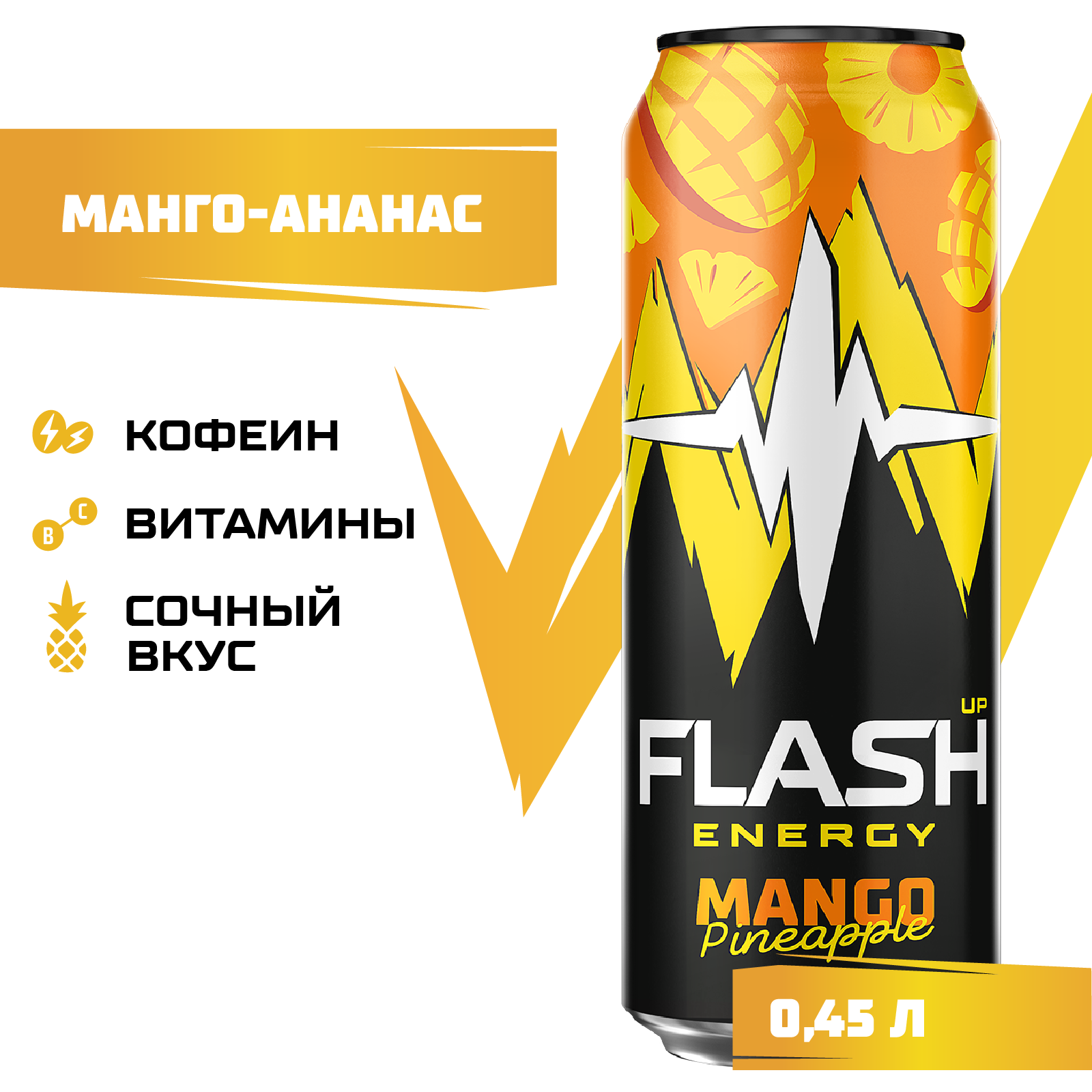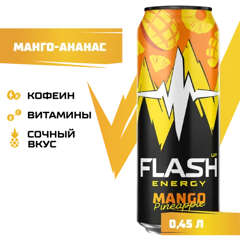"Flash Up Energy Манго-Ананас Банка 0,45 л – Экзотический заряд для твоей энергии! Flash Up Energyразвернуть