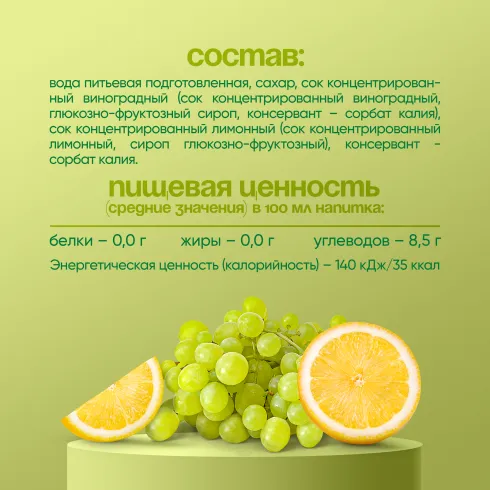 вода питьевая подготовленная, сахар, концентрированный сок белого винограда, концентрированный сок лимона, консервант - сорбат калия