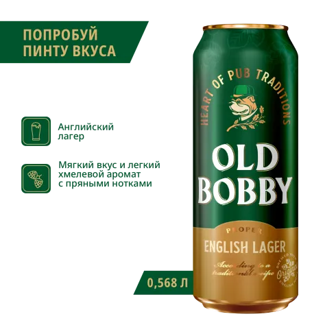 "Old Bobby Lager Банка 0,45 л – классика лёгкости и свежести!