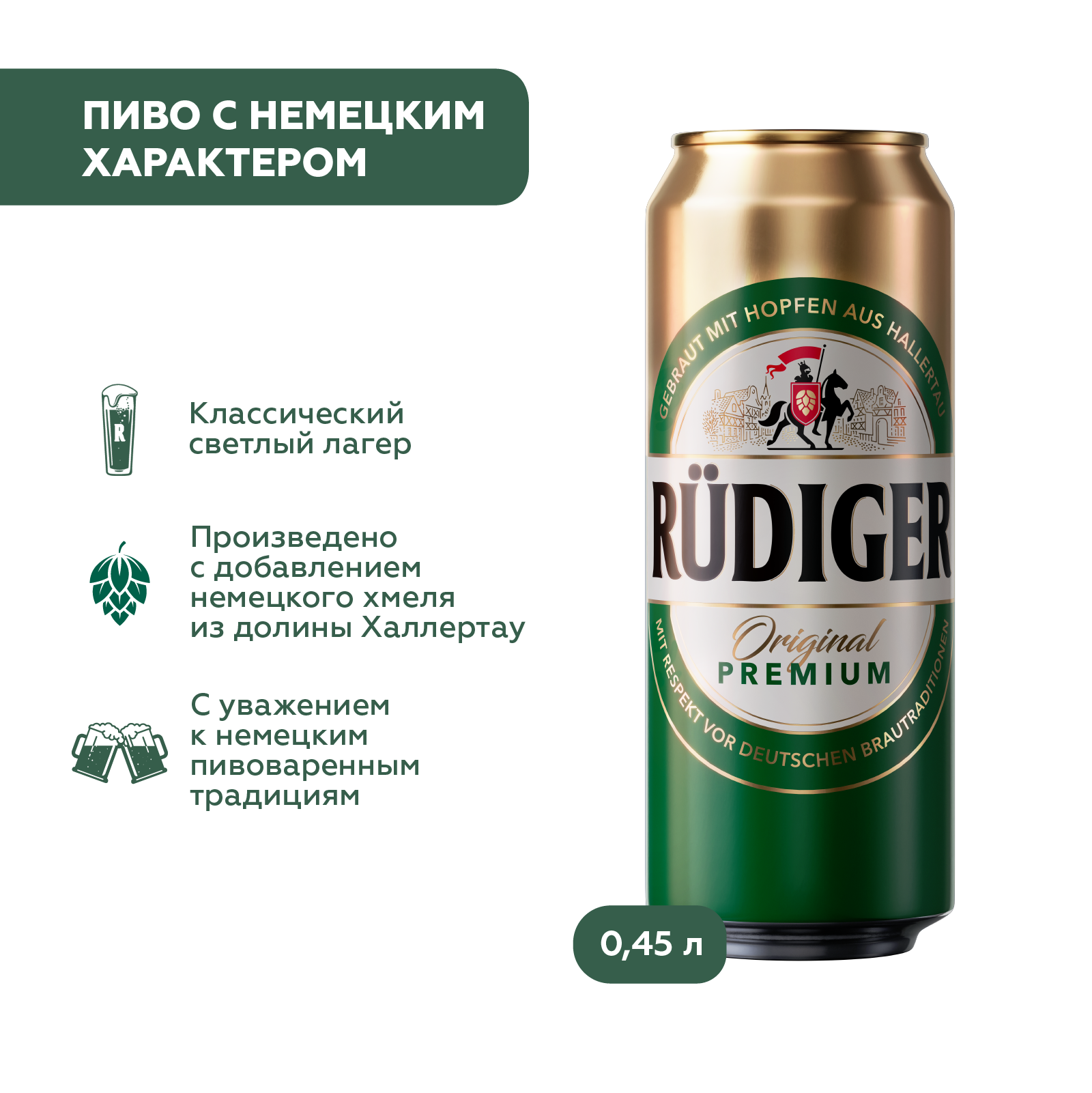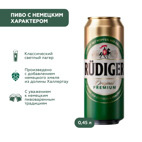Rudiger Original Premium — подробнее"Rudiger Original Premium Банка 0,45 л – насыщенный вкус премиум пива!