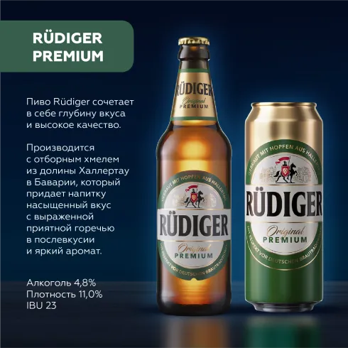 Приобрети Rudiger Original Premium уже сегодня и наслаждайся качественным вкусом премиум пива!"