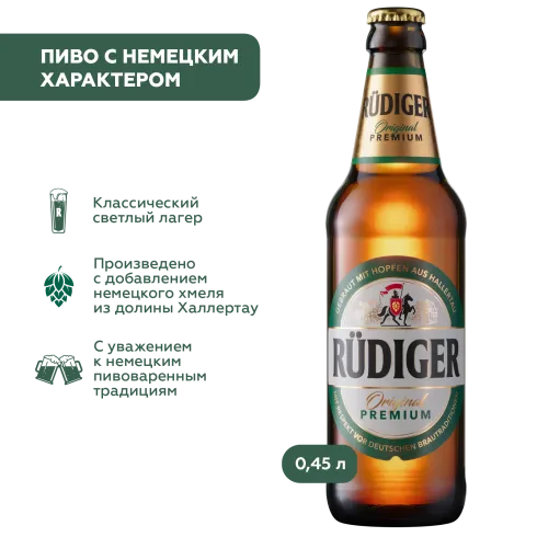 Приобрети Rudiger Original Premium уже сегодня и наслаждайся премиум пивом с насыщенным вкусом!"